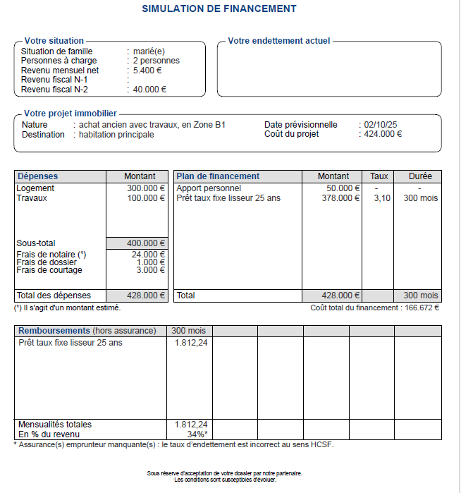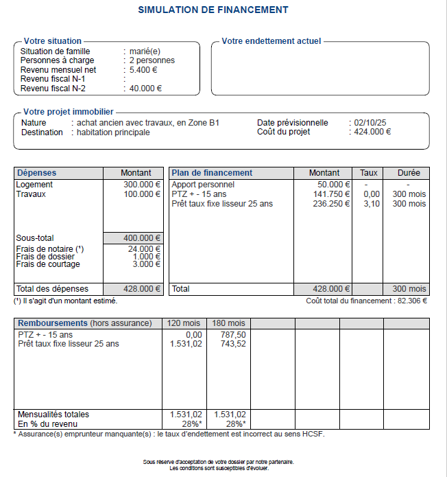 Vous verrez dans un exemple ci-dessous qu'il est parfois possible de diviser le coût des intérêts par 2, en ajustant les travaux que vous aviez prévu de réaliser.
